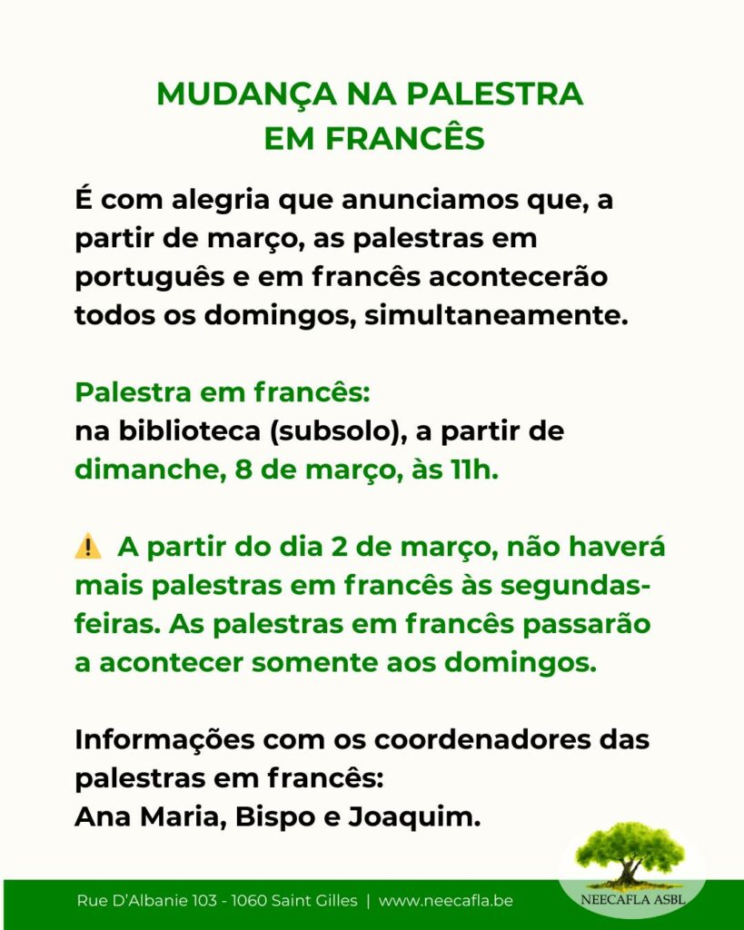 Mudança na palestra em francês