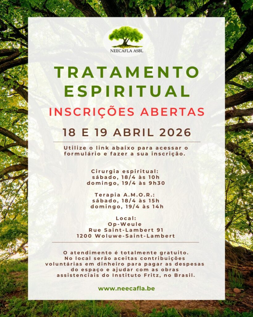 Inscrições Abertas – Tratamento Espiritual 05/03/2026 | Português Use este link para fazer sua inscrição: https://forms.gle/afwExdXfASqgx7KC8